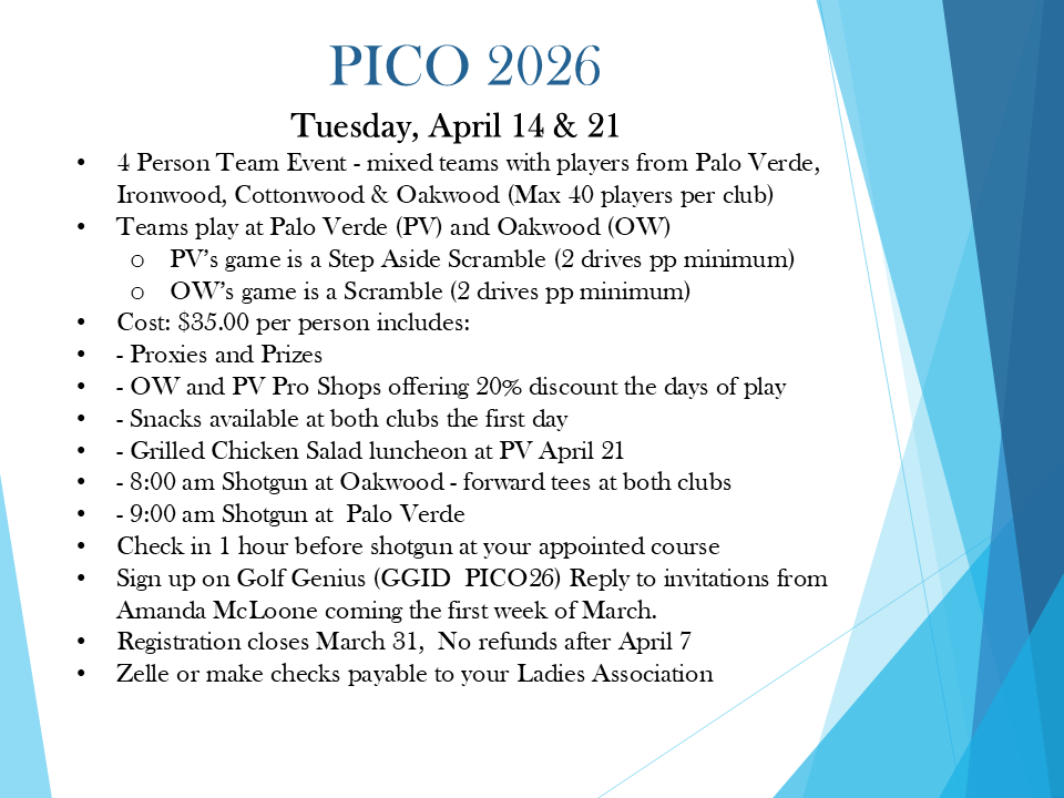 | 2026 | April 14 & 21 – Oakwood and Palo Verde | 2026 Committee |